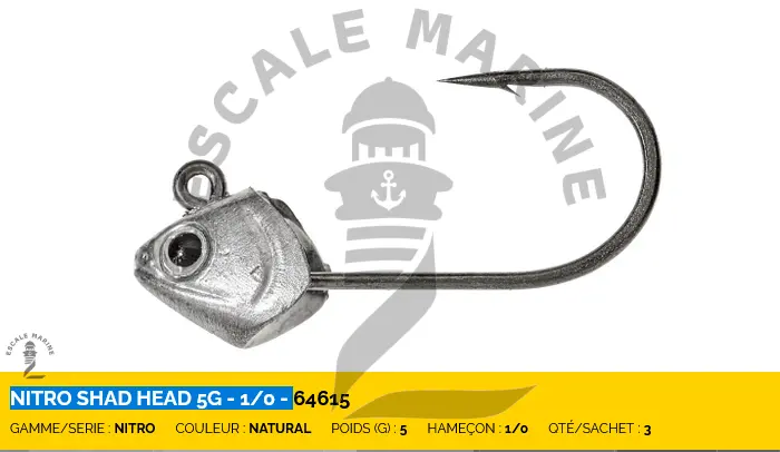 Idéale pour le NITRO SHAD et autres leurres souples à fortes vibrations, cette tête plombée est disponible en neuf grammages différents, offrant ainsi une grande polyvalence selon les conditions de pêche.