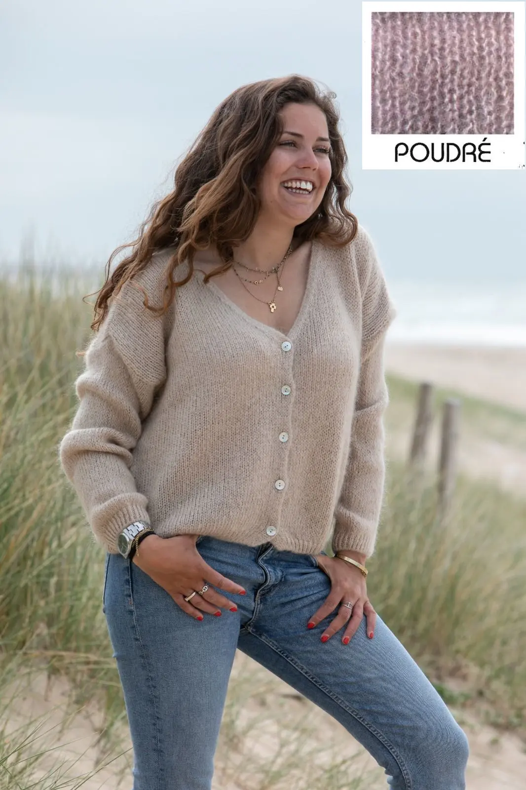 Matière : 30% Mohair 30% Polyamide 40% Acrylique. Tricoté dans une maille douce et légère pour un confort optimale